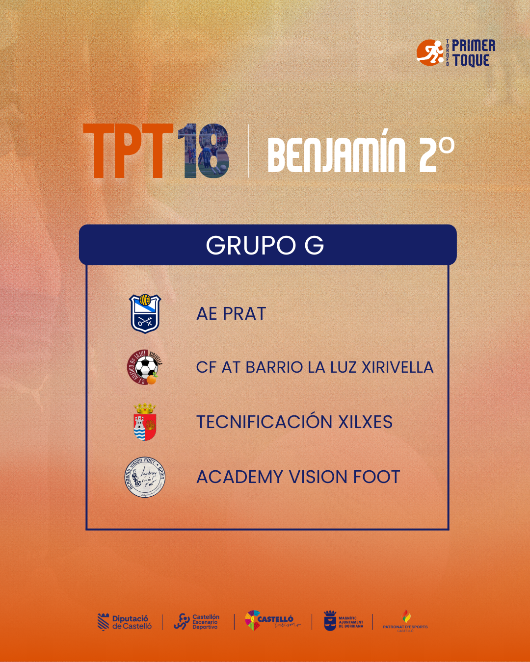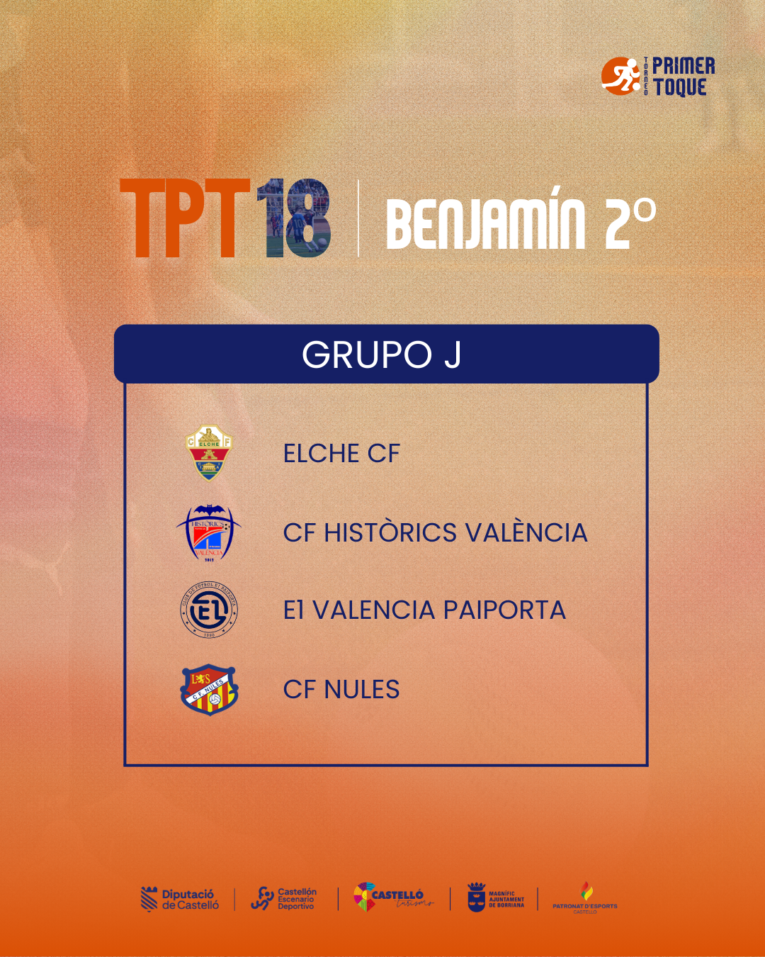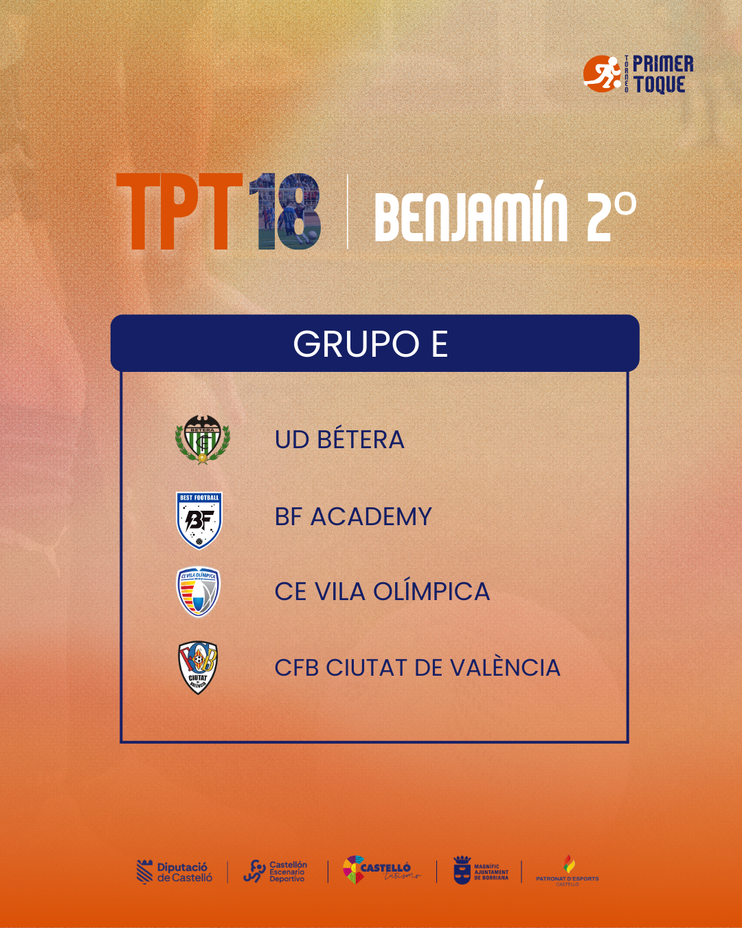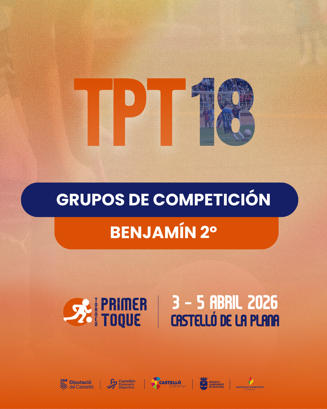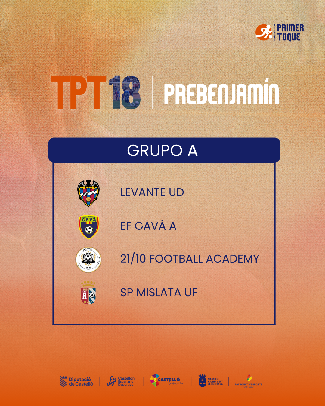 ¡La espera ha terminado! Consulta ya los grupos para las diferentes categorías de la 18ª edición del Torneo Primer Toque, que se celebrará en Castellón y Burriana del 3 al 5 de abril de 2026. ⚽