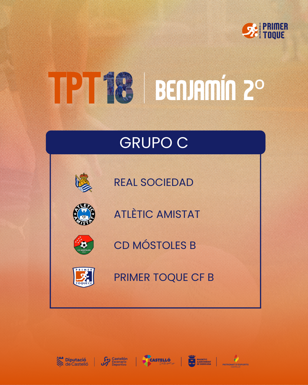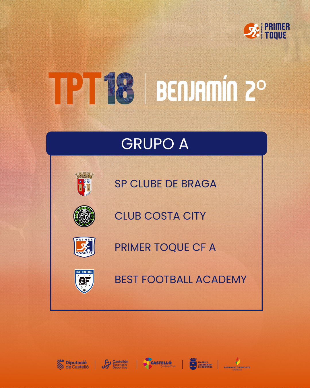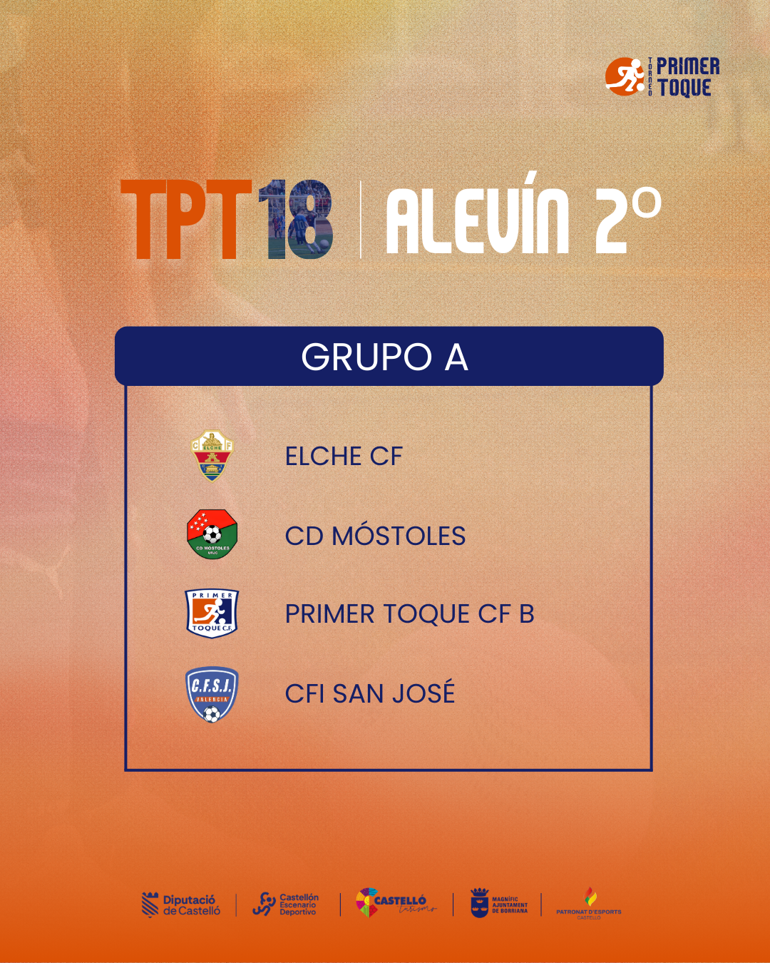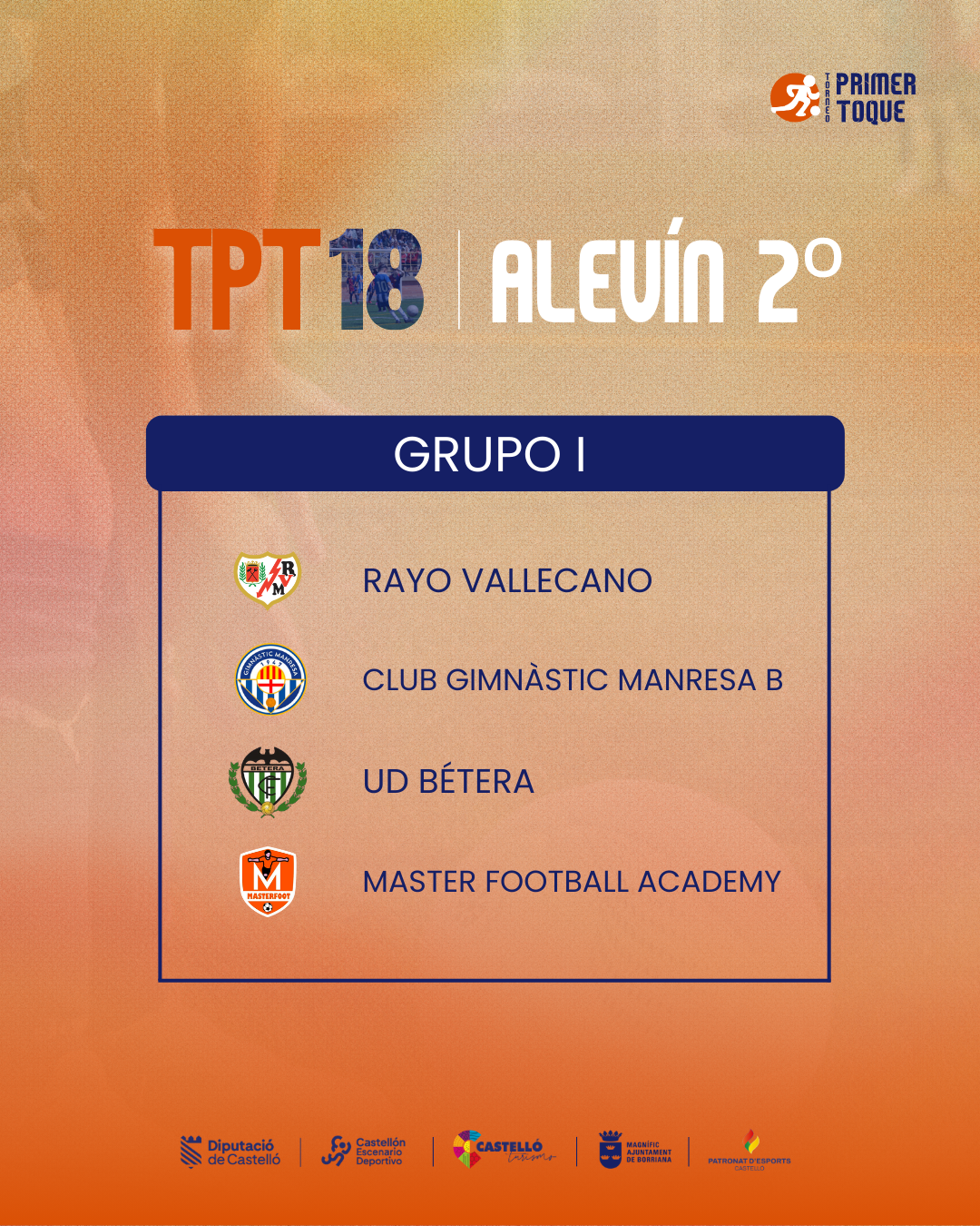 ¡La espera ha terminado! Consulta ya los grupos para las diferentes categorías de la 18ª edición del Torneo Primer Toque, que se celebrará en Castellón y Burriana del 3 al 5 de abril de 2026. ⚽