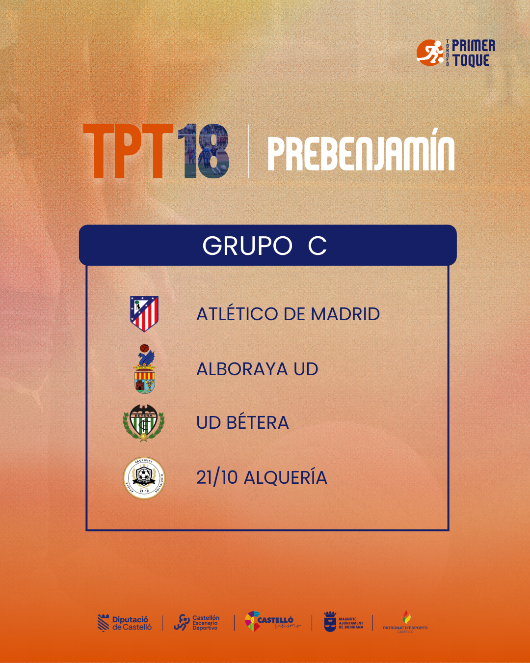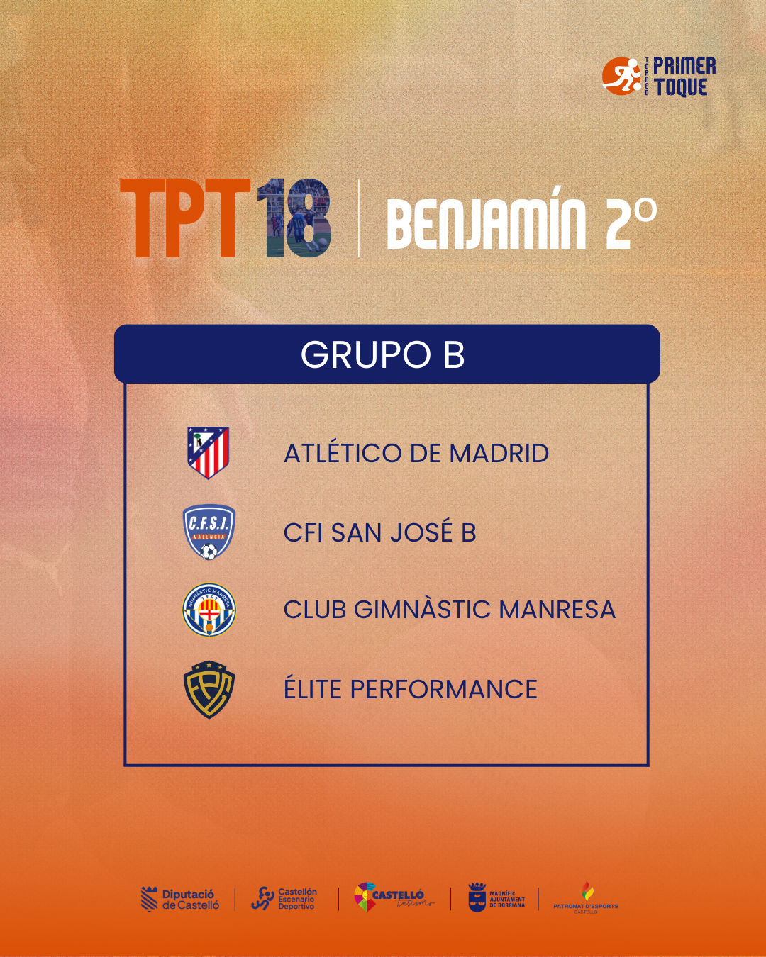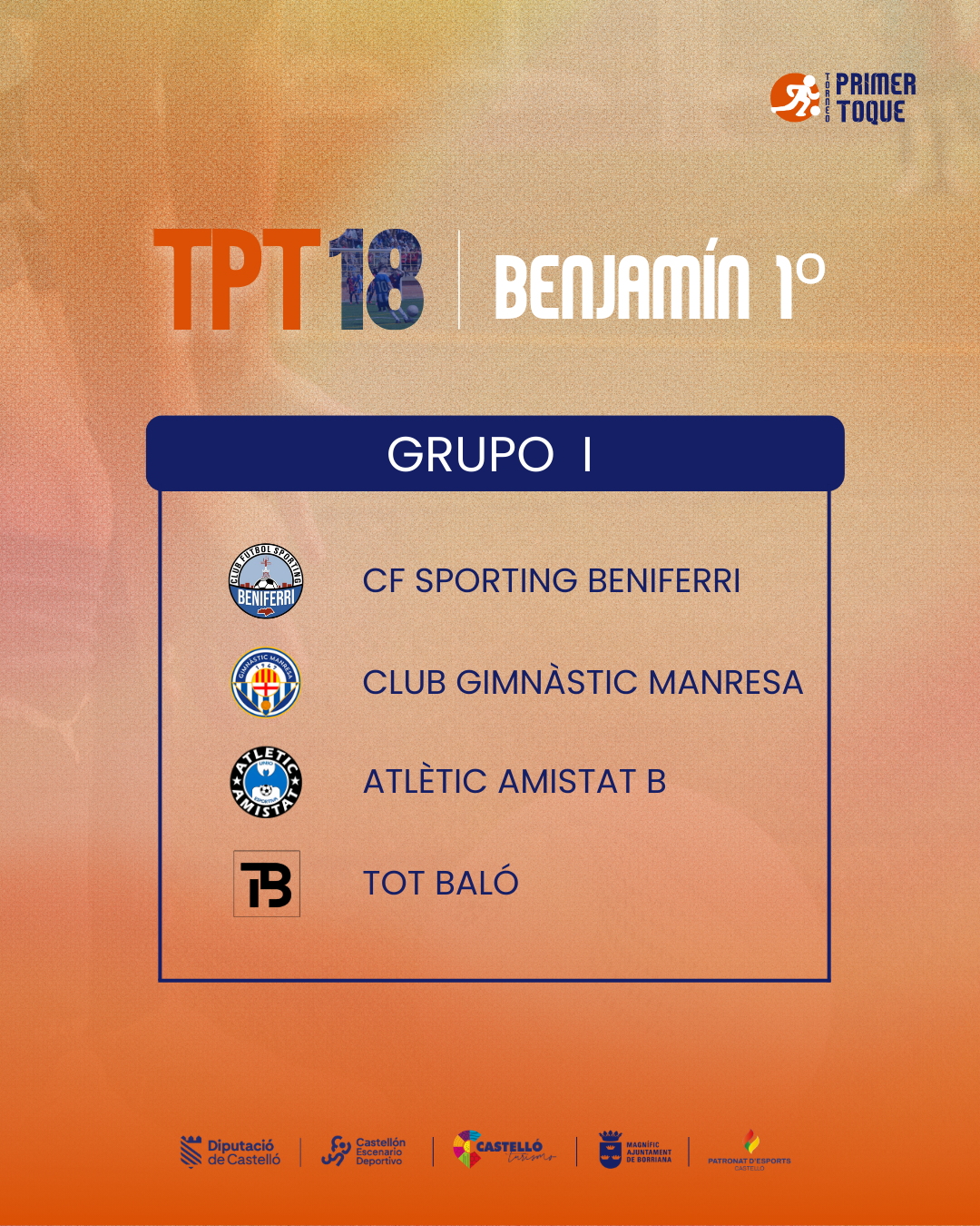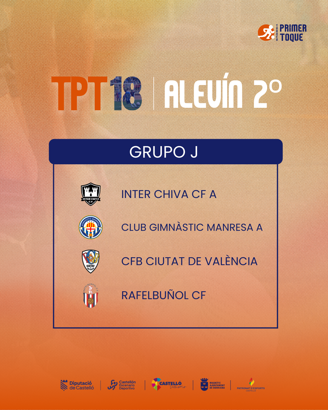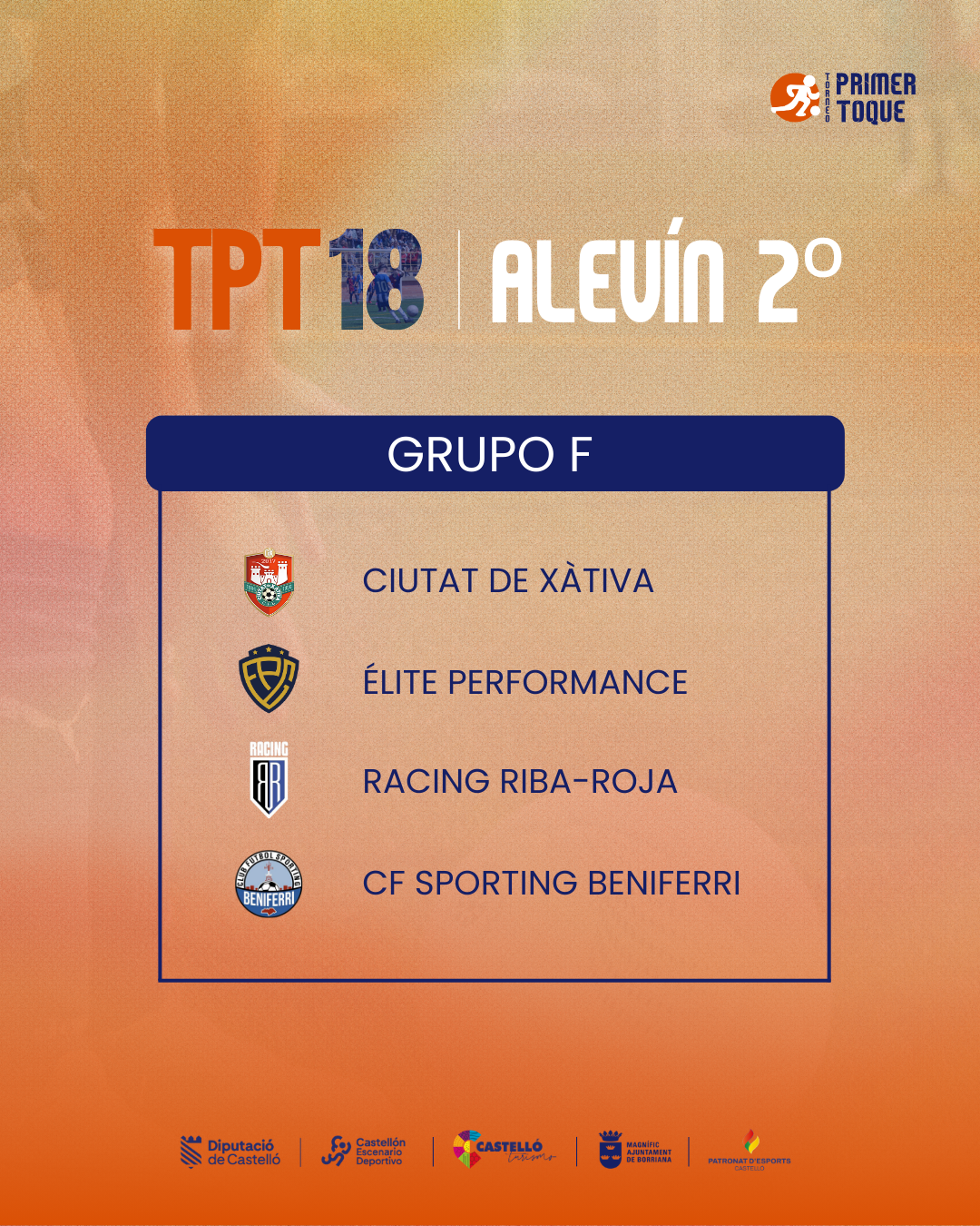 ¡La espera ha terminado! Consulta ya los grupos para las diferentes categorías de la 18ª edición del Torneo Primer Toque, que se celebrará en Castellón y Burriana del 3 al 5 de abril de 2026. ⚽