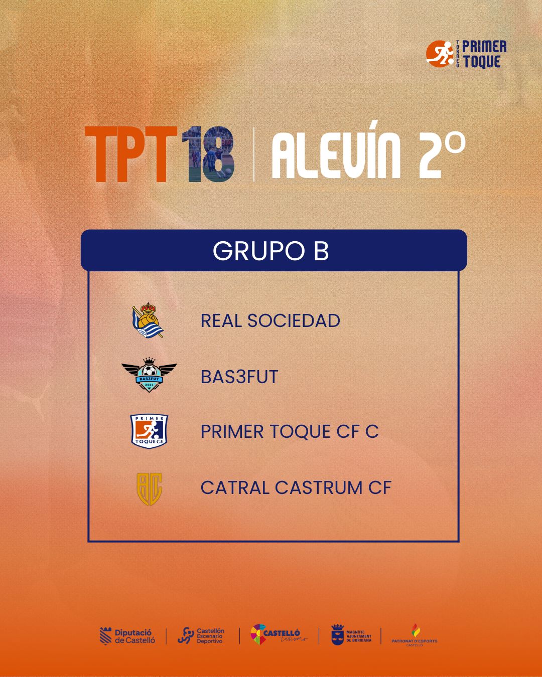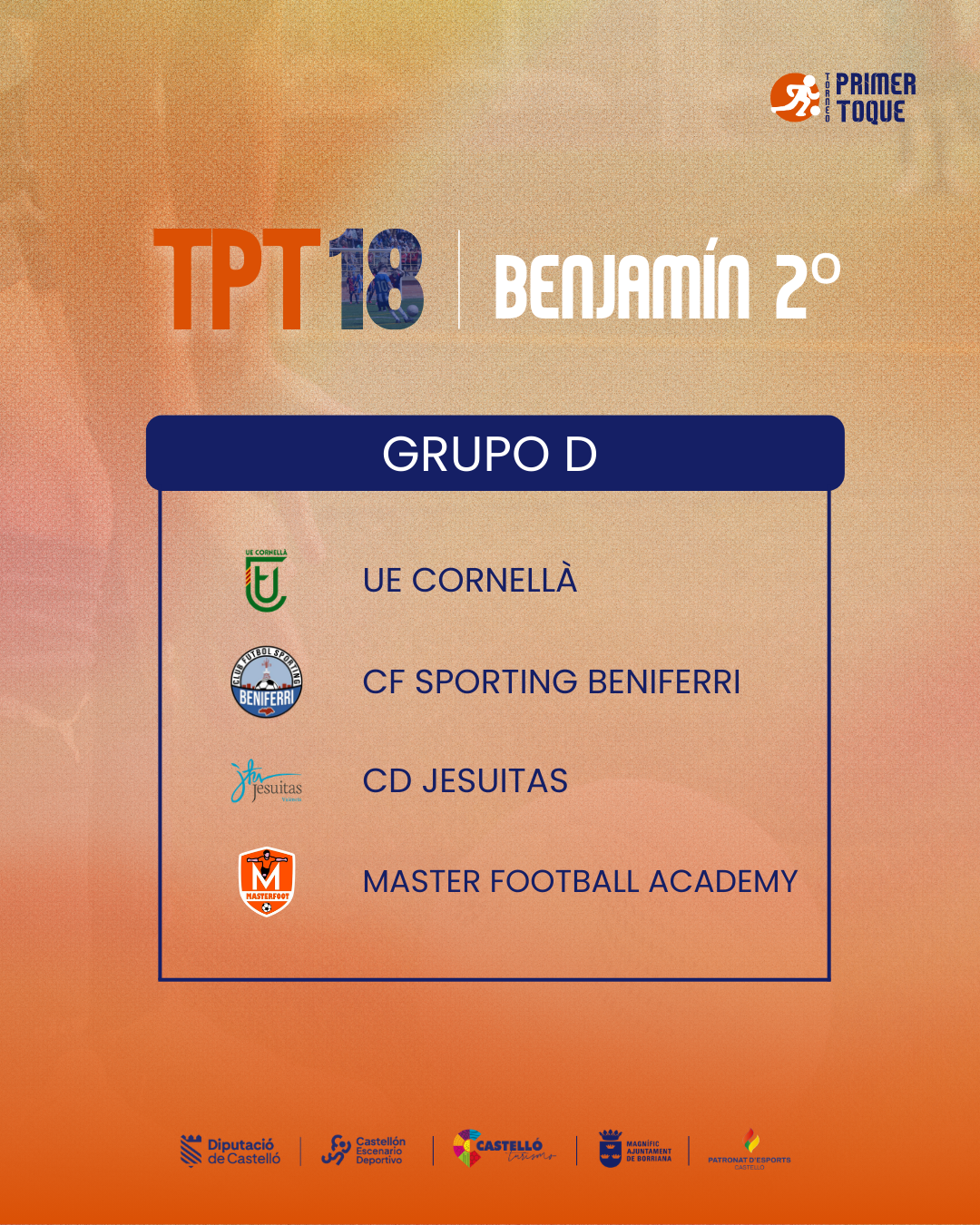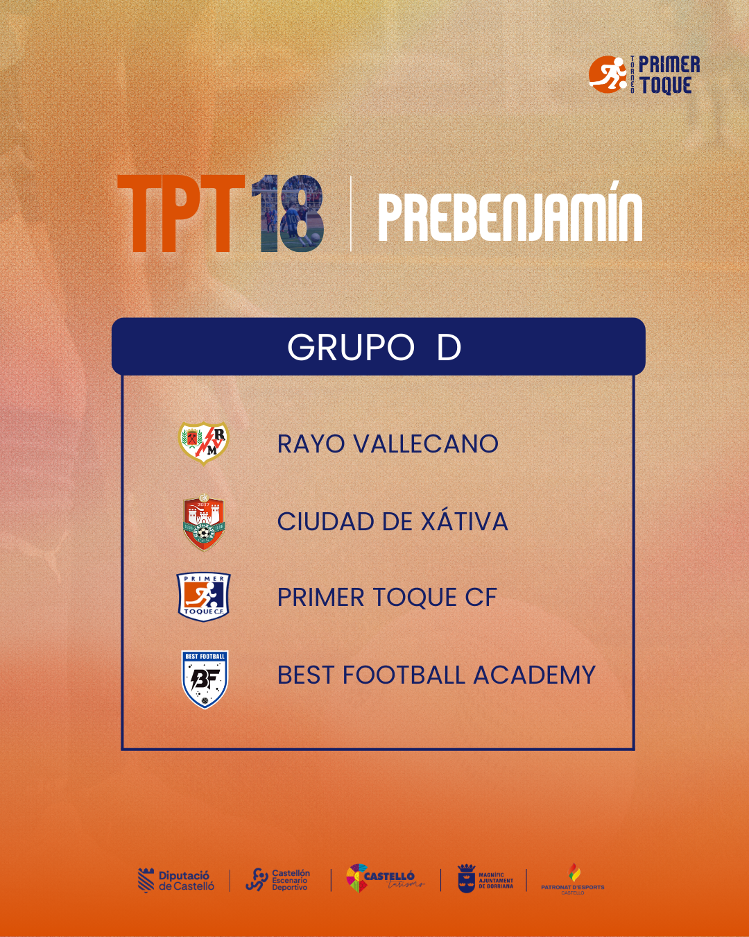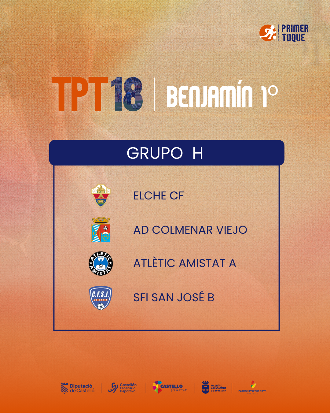 ¡La espera ha terminado! Consulta ya los grupos para las diferentes categorías de la 18ª edición del Torneo Primer Toque, que se celebrará en Castellón y Burriana del 3 al 5 de abril de 2026. ⚽