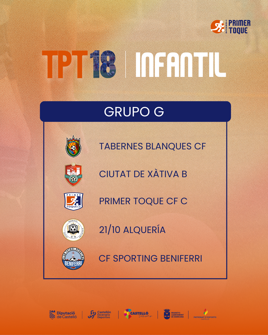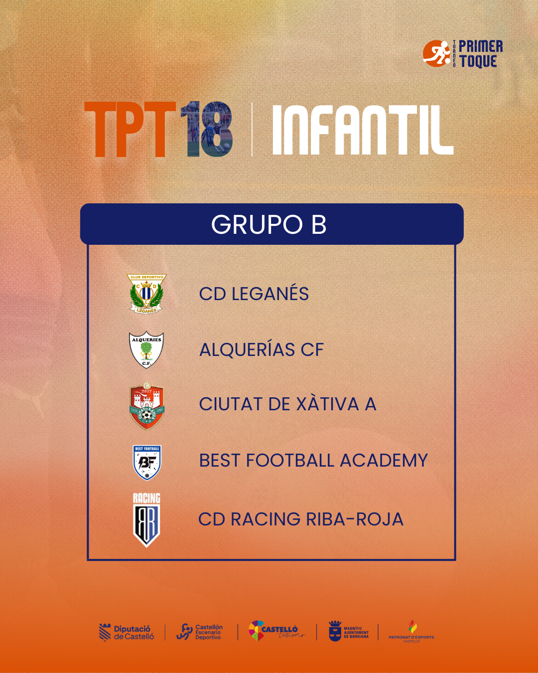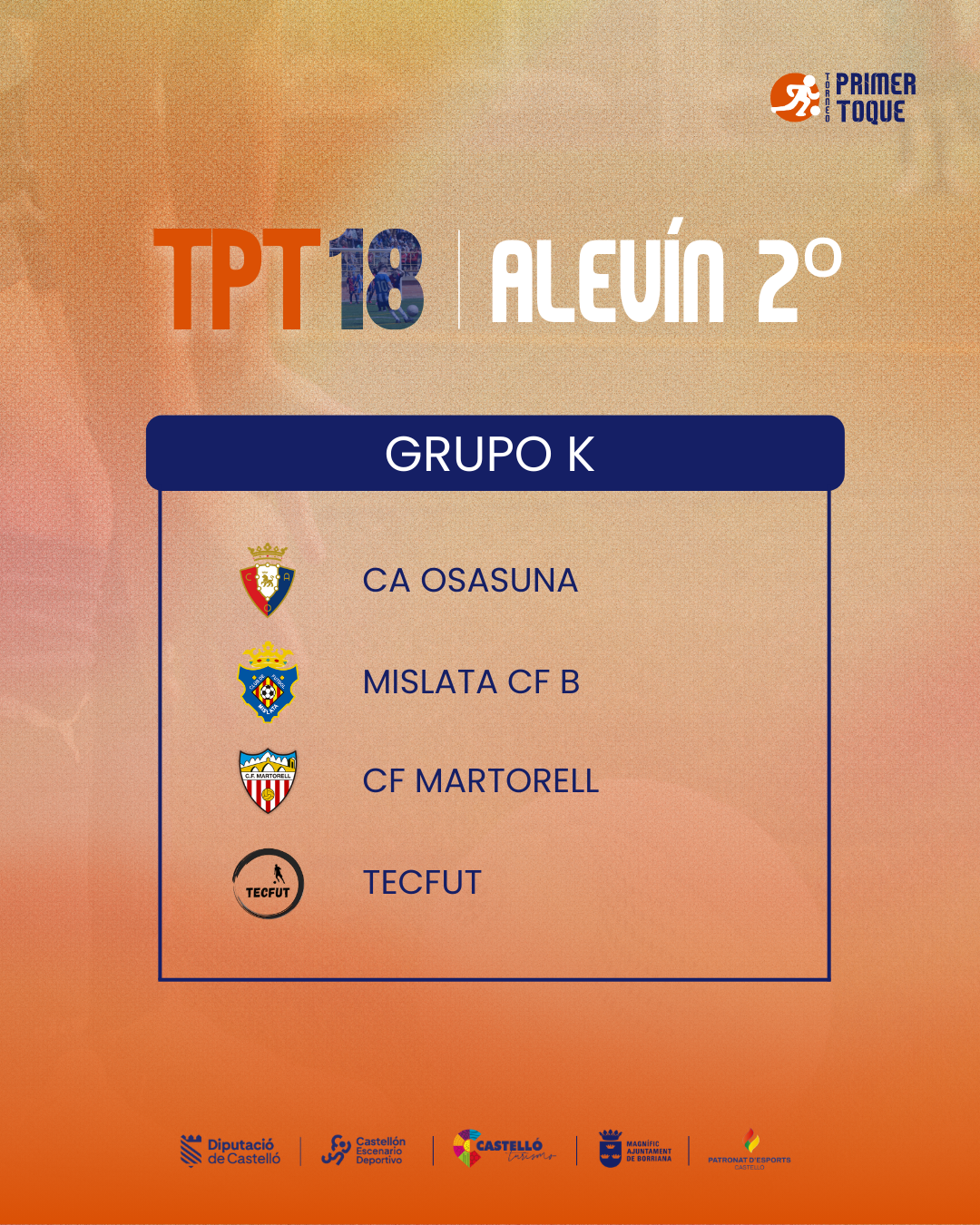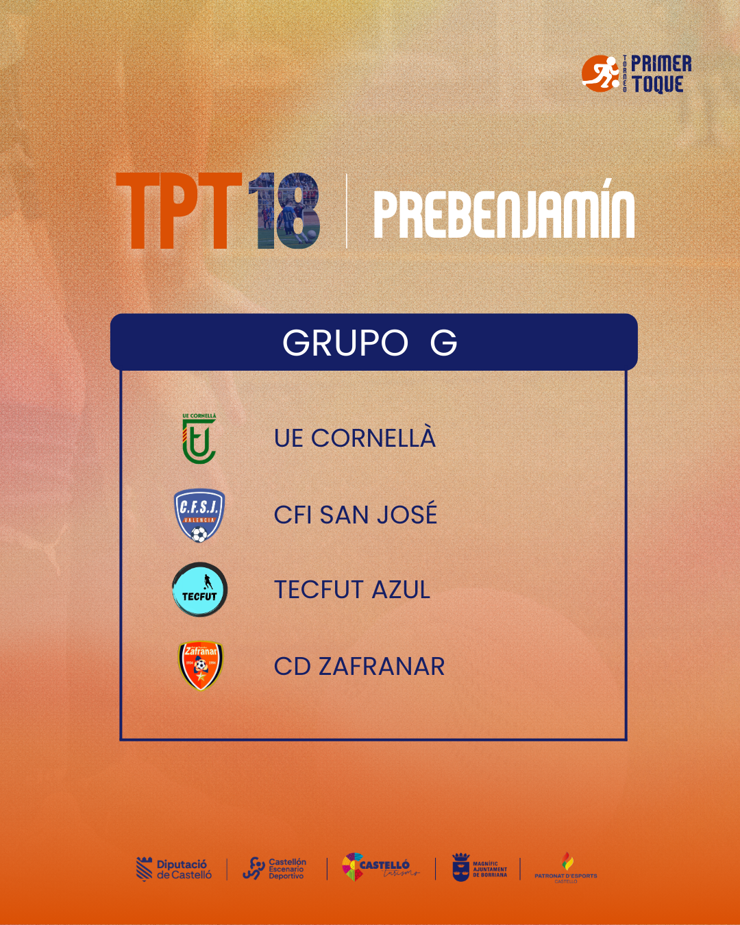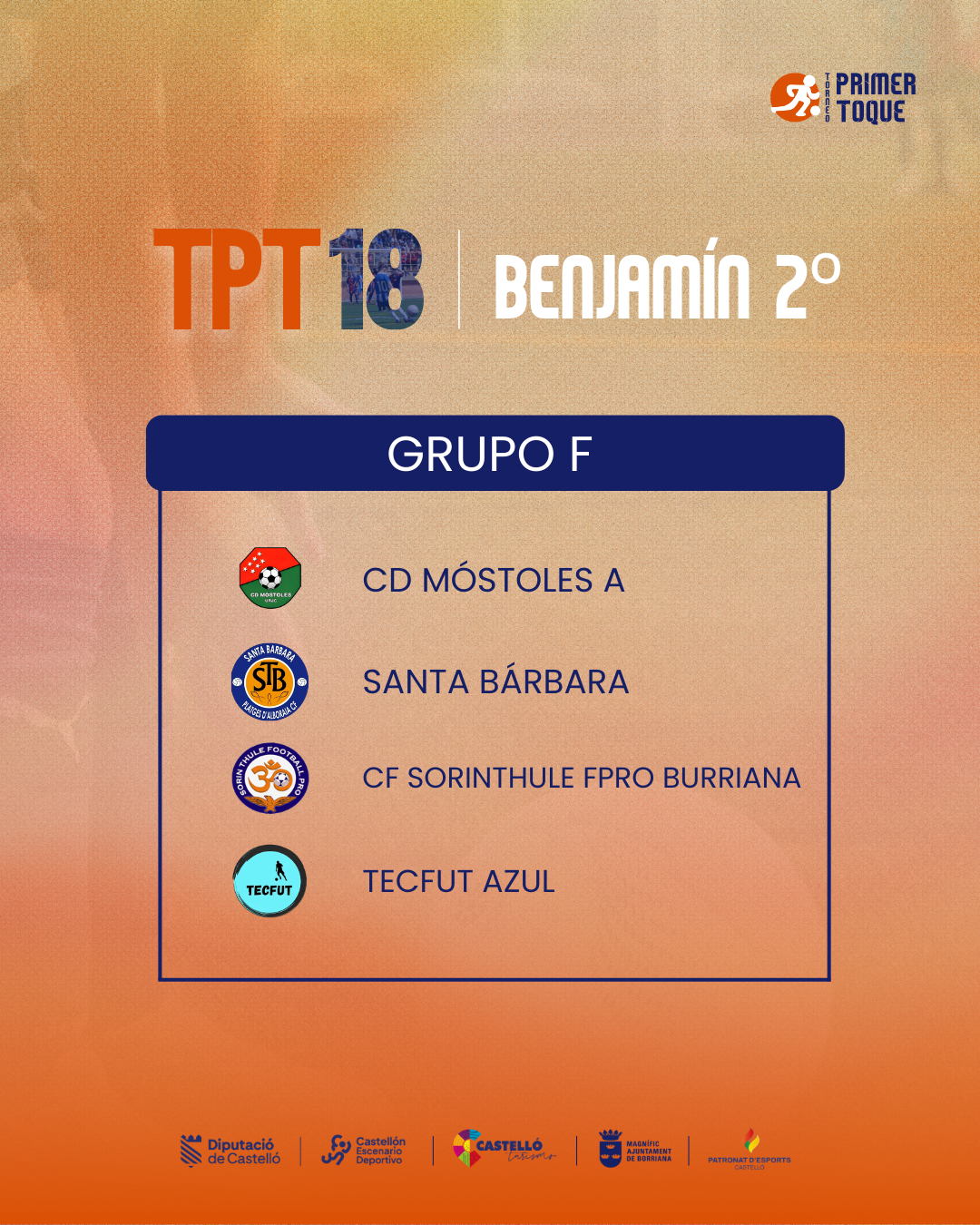 ¡La espera ha terminado! Consulta ya los grupos para las diferentes categorías de la 18ª edición del Torneo Primer Toque, que se celebrará en Castellón y Burriana del 3 al 5 de abril de 2026. ⚽
